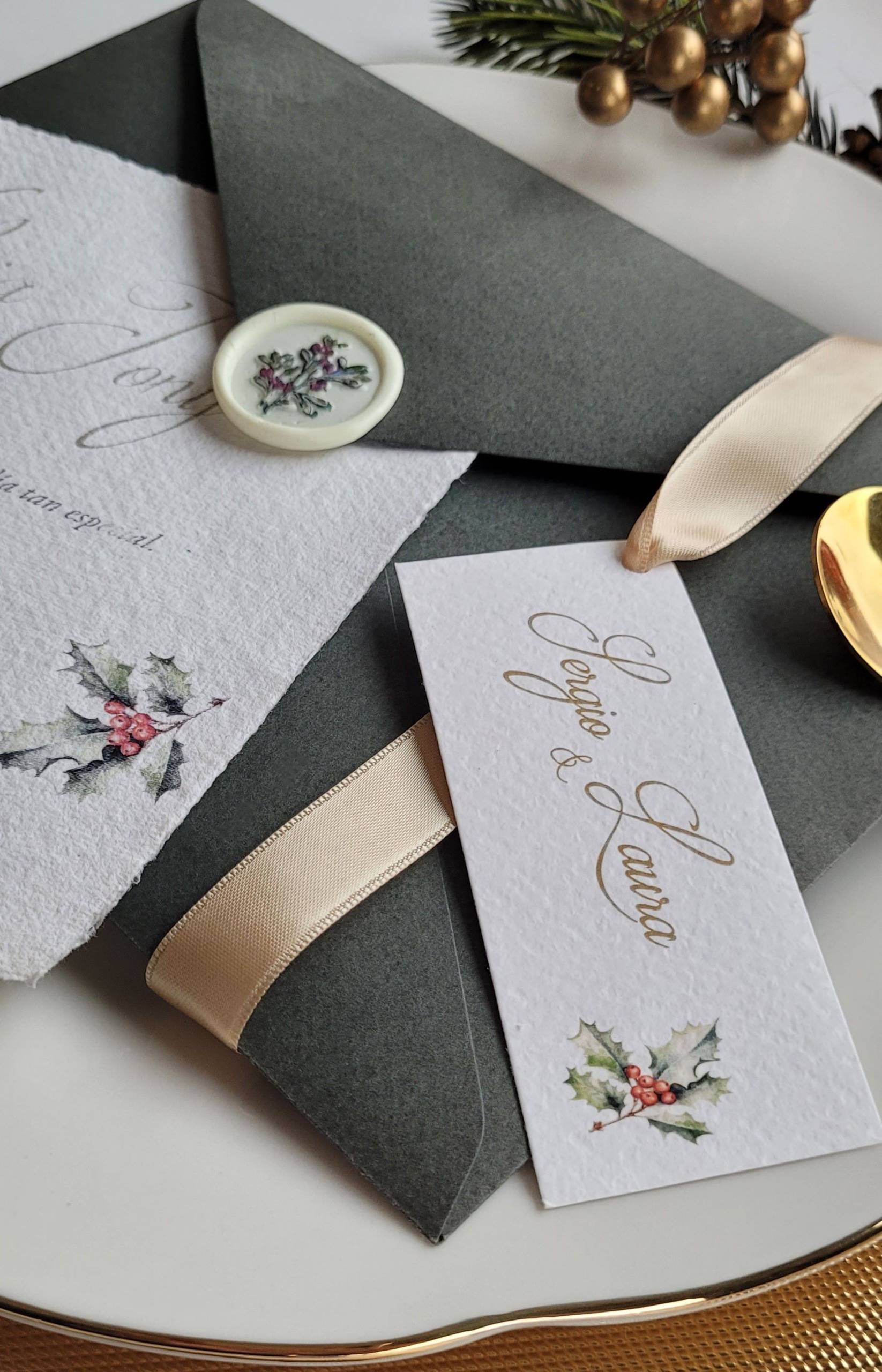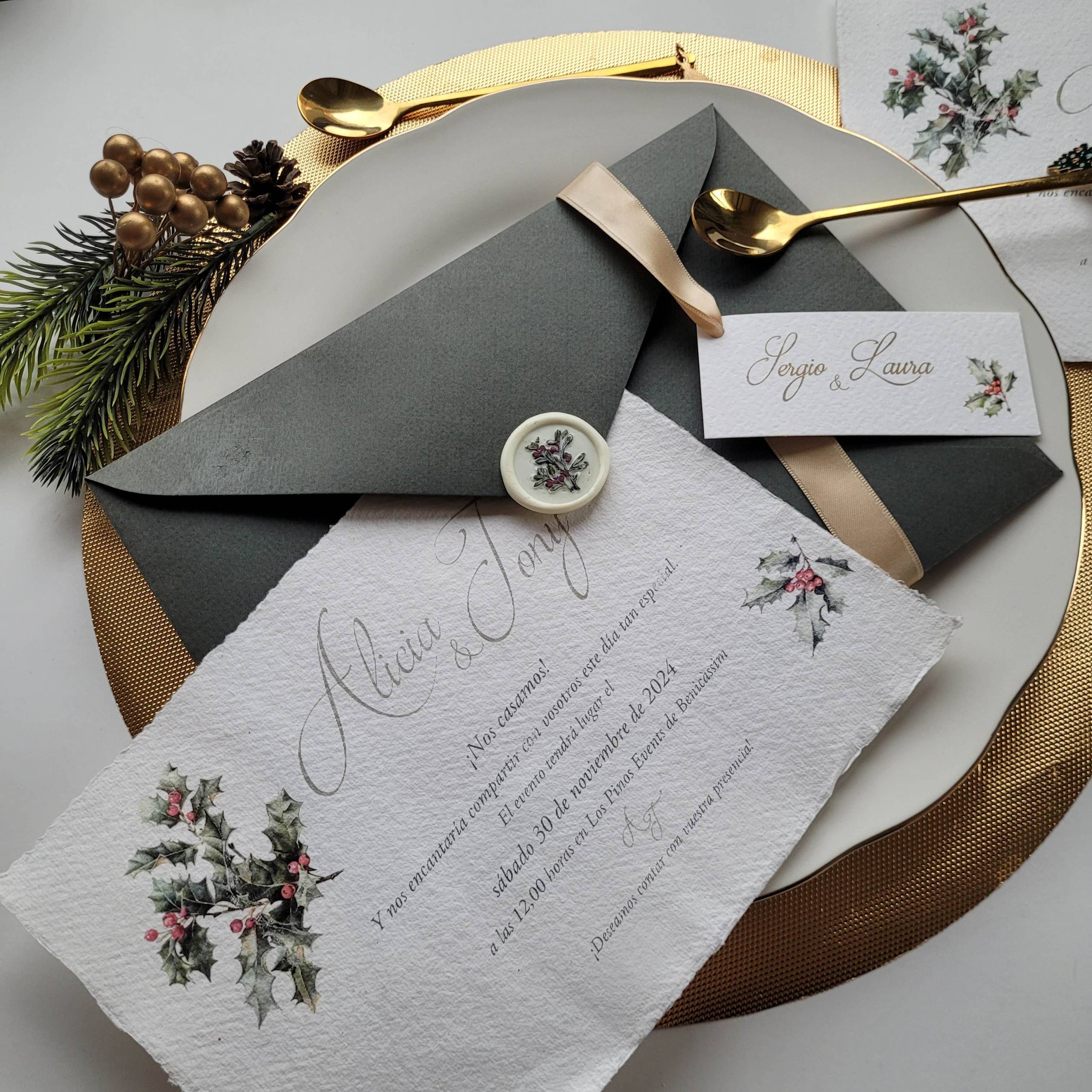 Papel Artesanal Acebo Navidad