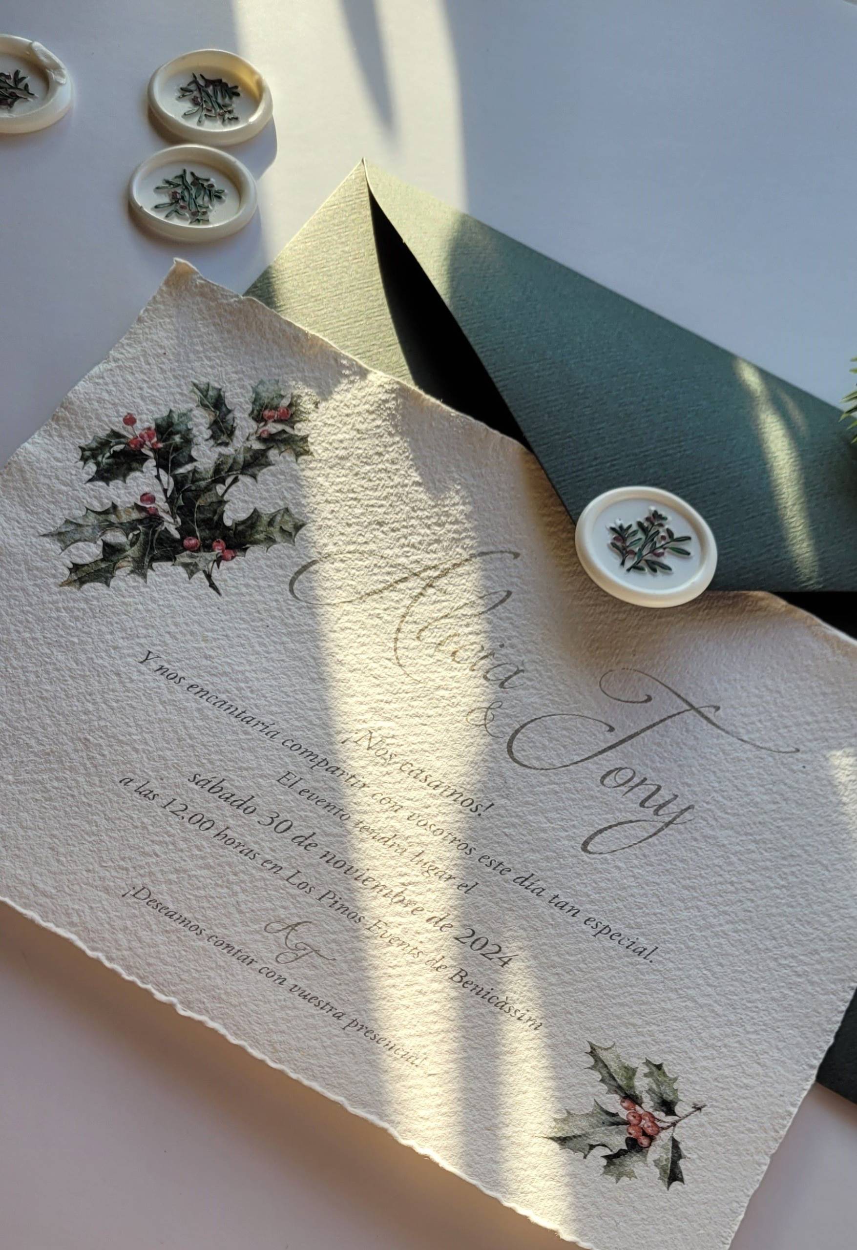 Invitación papel artesano algodón natural